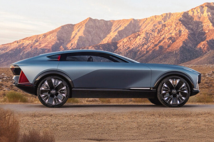 Концепт Cadillac Elevated Velocity переосмысливает формулу серии V-Series в виде приподнятого электрического кроссовера с двухрежимной системой привода, который сочетает в себе трековую производительность и внедорожные возможности, а также оснащён дверями «крыло чайки».